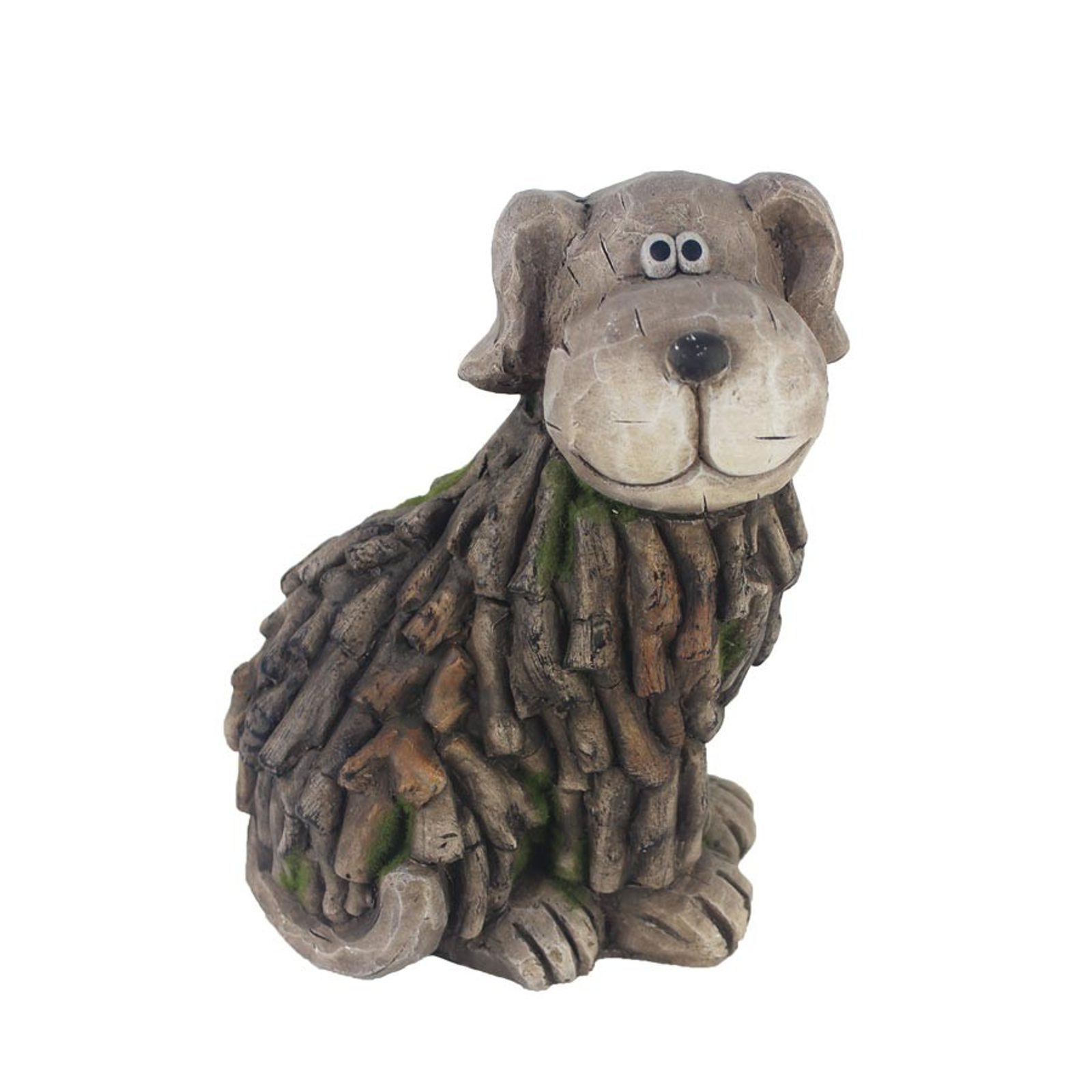 Dekorační pes. Není mrazuvzdorné, na zimu schovávat! Rozměry : 18,7 x 15,1 cm, výška 30,7 cm. Barva : kombinace šedá, hnědá. Materiál : magnesium.