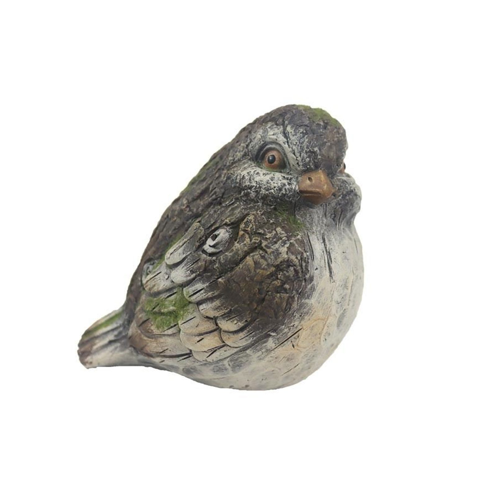 Dekorační ptáček. Rozměry : 15 × 12.1 cm, výška 13.6 cm. Barva : kombinace šedá, hnědá. Materiál : terakota.Rozměr: 15 × 12.1 × 13.6 cm