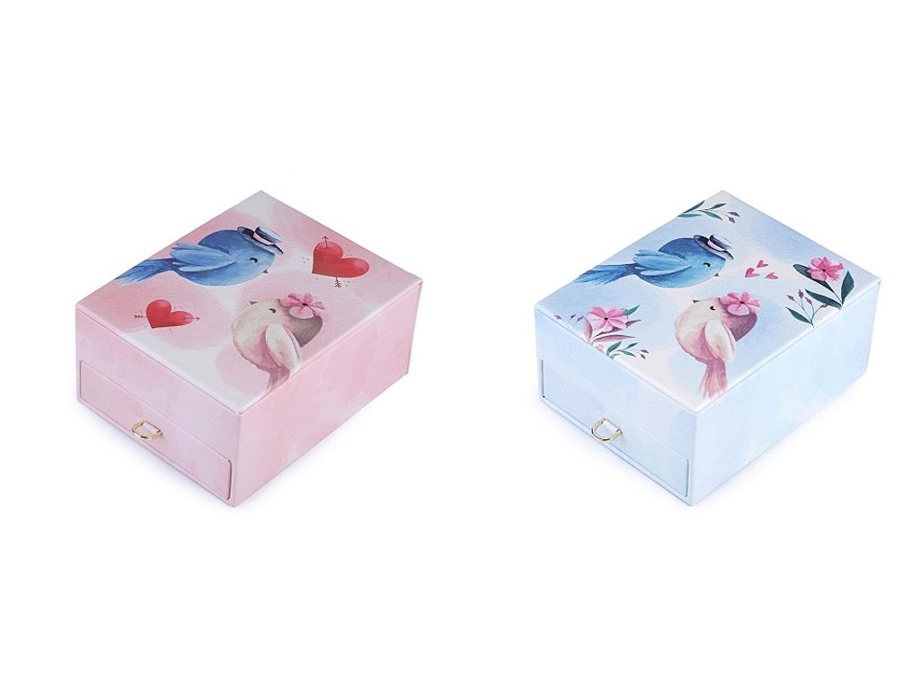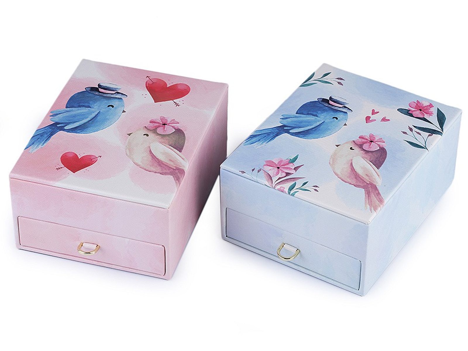 Šperkovnice s romantickým potiskem ptáčků spolehlivě ochrání šperky před nepříznivými vlivy okolí jako je světlo nebo vlhkost. Nahoře má odklápěcí víko se zrcadlem, ve spodní části je dlouhý šuplík. Pod víkem jsou 2 malé a velká přihrádka a oddíl na prsteny. Zrcadlo je odklápěcí, můžete ho pomocí přední hrany postavit (viz foto). Šperkovnice má velice kvalitní a precizní provedení.- Délka:: 18 cm