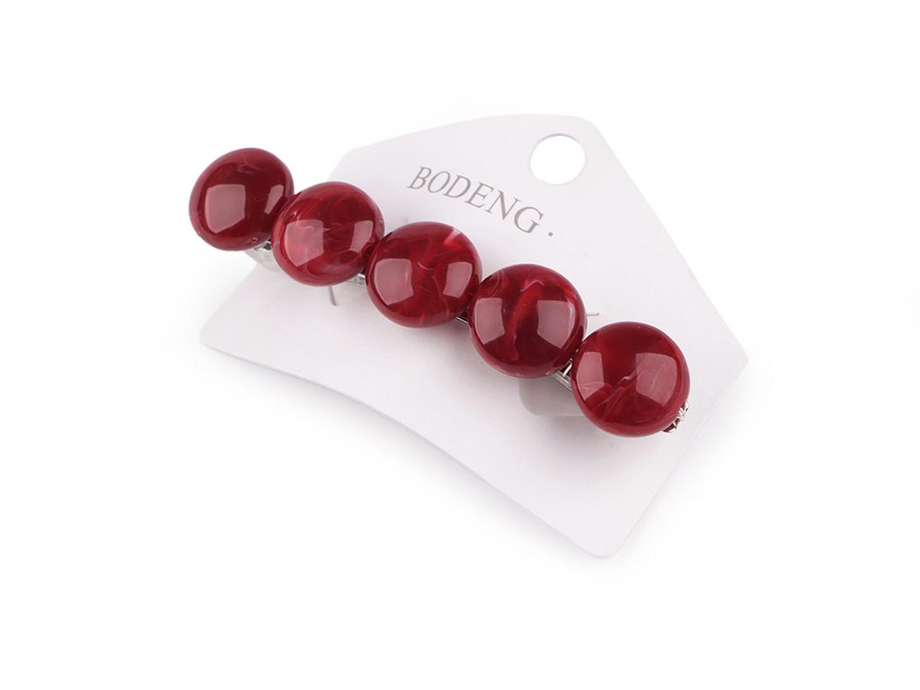 Francouzská spona zdobená kulatými akrylátovými kameny, které jsou inspirovány pravými minerály, poutavě ozdobí váš účes. Ať už máte jemné prameny nebo husté lokny, touto sponou snadno sepnete vlasy do copu nebo vytvoříte elegantní drdol, který bude vypadat, jako kdyby ho vytvořil profesionál. Spona má kvalitní celokovové provedení, zacvakávací mechanismus je pevný. Délka části pro vlasy je 5,5 cm.- Materiál: plast, bižuterní kov s galvanizací
