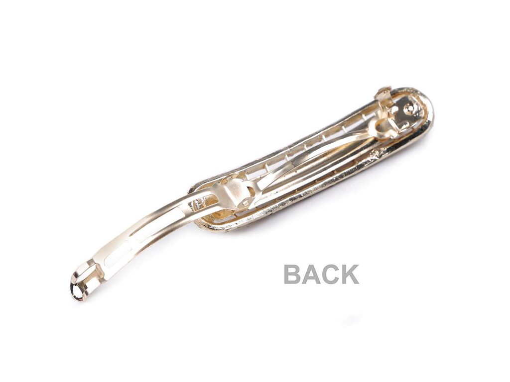 Francouzská spona s perlami a broušenými korálky luxusně ozdobí slavnostní účes. Má velmi kvalitní celokovové provedení. Zacvakávací mechanismus je pevný. Broušené korálky se oslnivě třpytí, upoutají pozornost už z dálky.Délka části pro vlasy je 4,5 cm.
