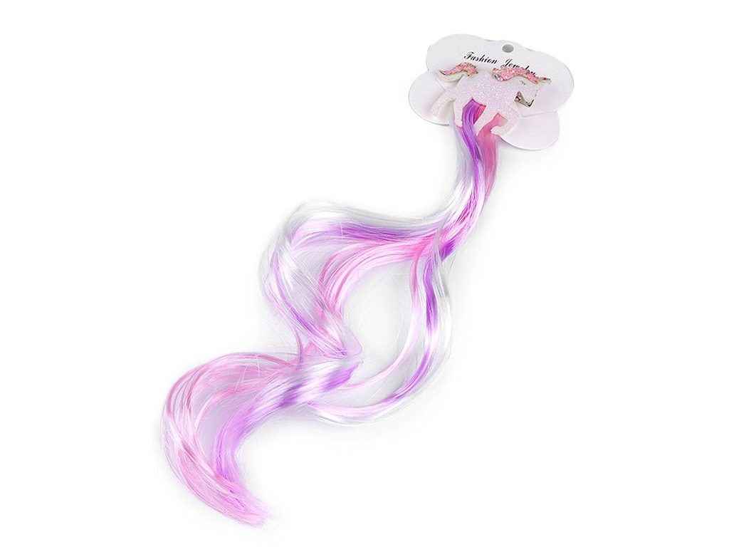 Duhové pramínky vlasů na sponce s jednorožcem potěší především malé slečny. Jednorožci jsou ozdobení glitry s opalizujícím AB efektem, díky kterým se působivě třpytí. Pramínky skvěle oživí účes. Při dětské hře na princezny jsou neocenitelným doplňkem.
