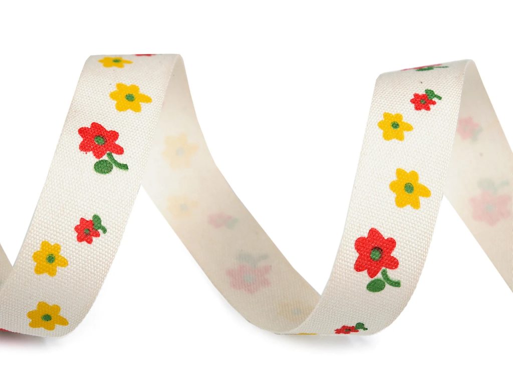 Bavlněná stuha šíře 15 mm květy návin 5 m