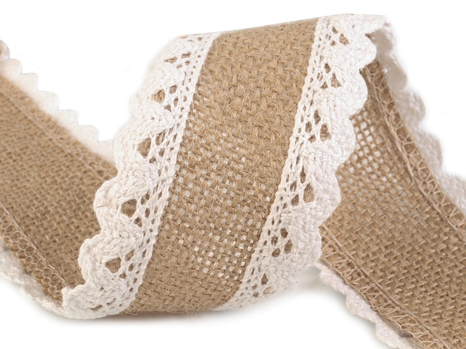 📌 Jutová stuha s bavlněnou krajkou šíře 54 mm