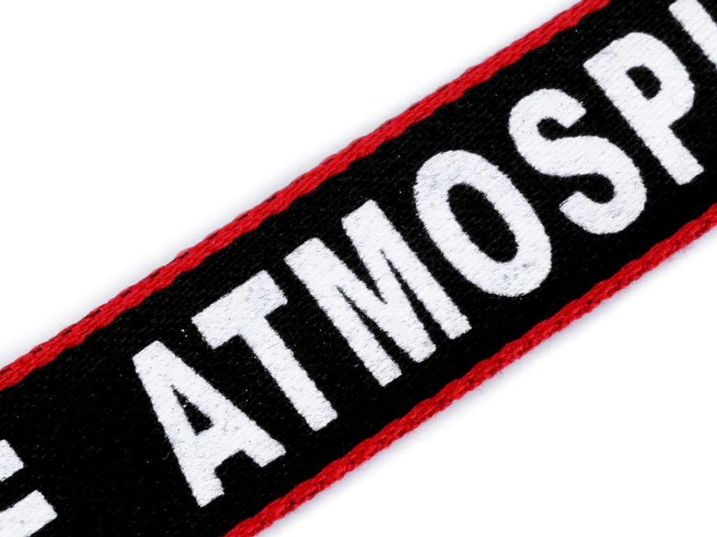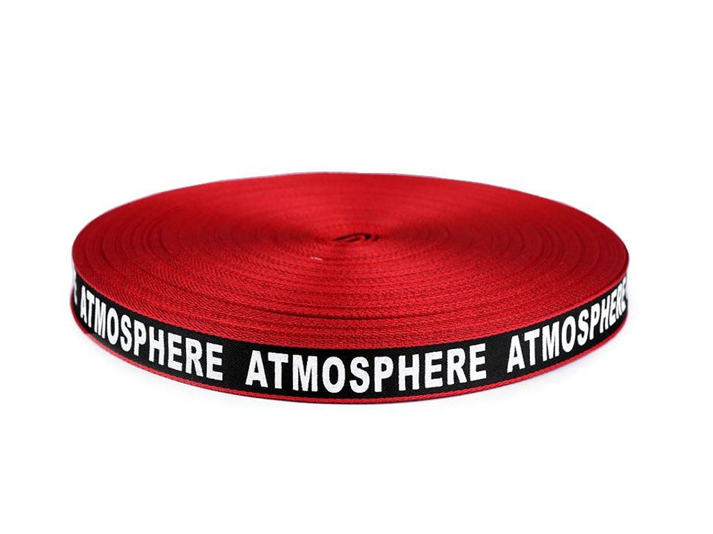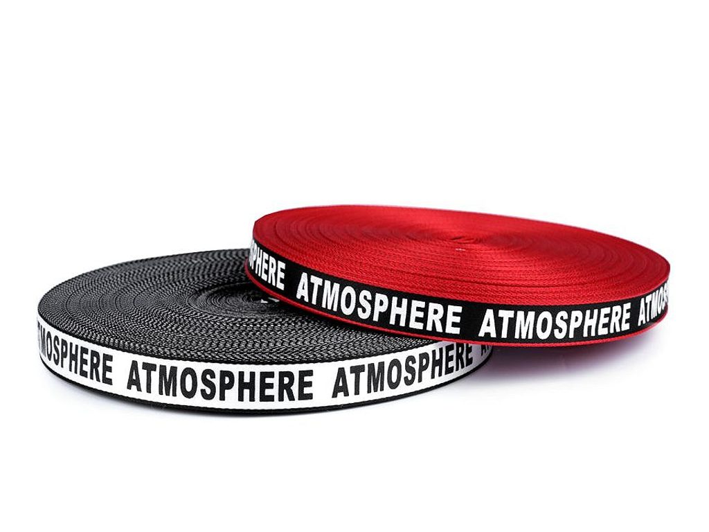 Lemovací prýmek s nápisem Atmosphere skvěle ozdobí nejen sportovní oděvy. Je jednostranný, velice pevný.