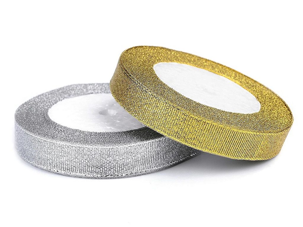 Stuha lurexová šíře 3 mm svatební návin 20m