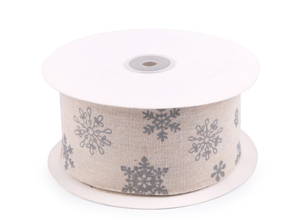 📌 Vánoční lněná stuha vločky šíře 63 mm řezaná METRÁŽ