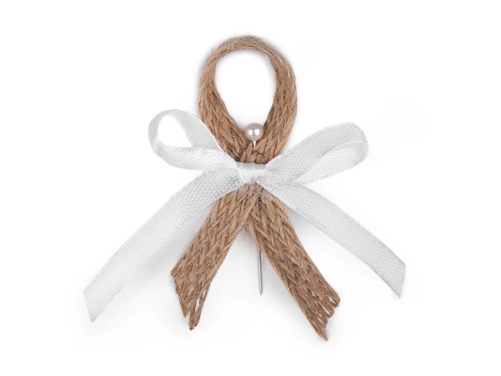 Svatební jutové mašličky v boho stylu jsou velice populární. Slouží především k ozdobení klopy ženicha a svatebčanů. Jsou kvalitní, ručně zpracované. Skládají se z jutové stuhy, saténové mašle a perleťového špendlíku. Mašličky můžete použít také k aranžování různých svatebních dekorací.