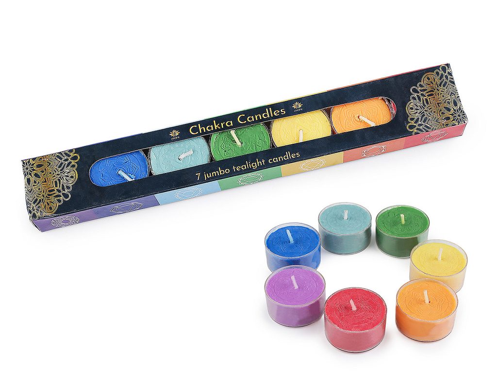 Sada vonných čajových čakrových svíček vykouzlí pohodovou atmosféru, nádherně provoní interiér a zharmonizují život a duševní pohodu. Jsou zabalené v papírové krabičce s transaprentním okénkem s popisem čaker.Svíčky mají vůni (seřazeno od kořenové čakry po korunní) růže, ylang ylang, lotos, cedr, eukalyptus, jasmín a levandule.