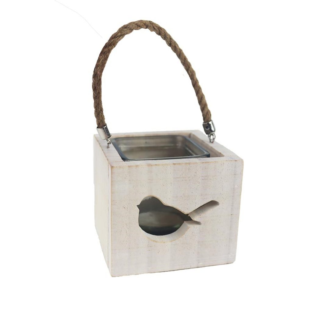 Dekorační svícen na jednu svíčku. Rozměry : 10,5 x 10,5 cm, výška 10 cm. Barva : kombinace bílá, hnědá. Materiál na bázi dřeva, sklo.