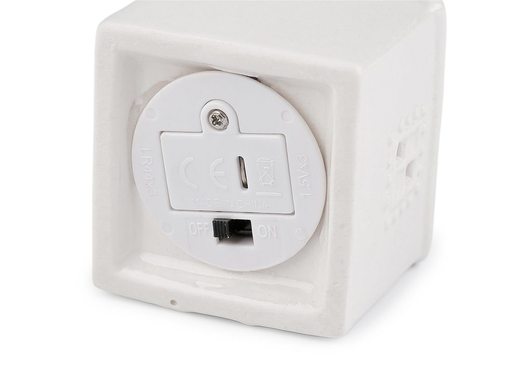 Porcelánový svítící domeček vnese do vašeho domova atmosféru pohody a klidu. Design domečku je inspirován tradičními tvary, s jemnými detaily, které mu dodávají na kouzlu a autentičnosti. Svítí jemným teplým světlem.Baterie (3x LR44) jsou součástí výrobku.