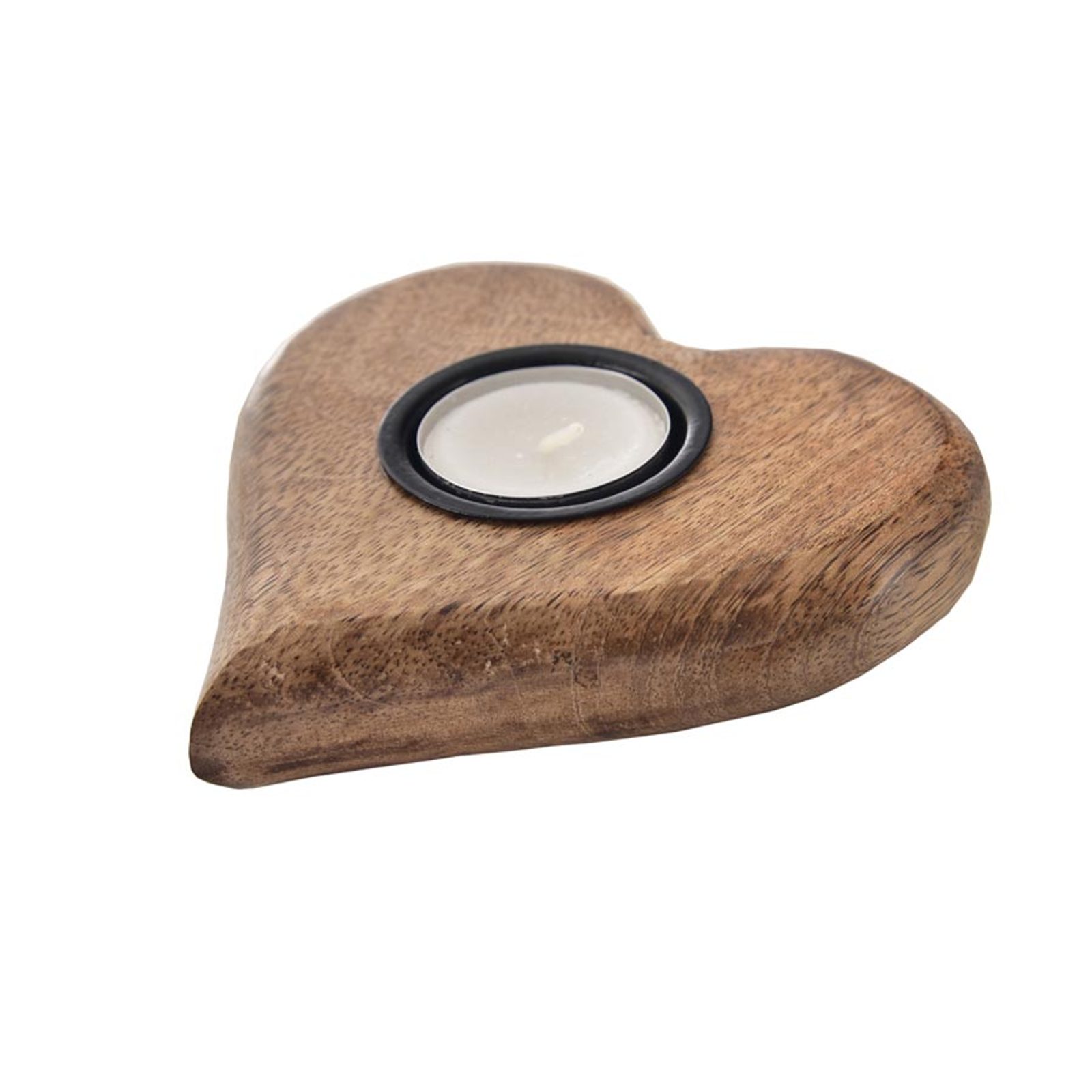Dekorační svícen ve tvaru srdce. Rozměry : 13 x 13 cm, výška 2 cm. Barva : hnědá. Materiál : dřevo mango.- Rozměr: 13 x 13 x 2 cm