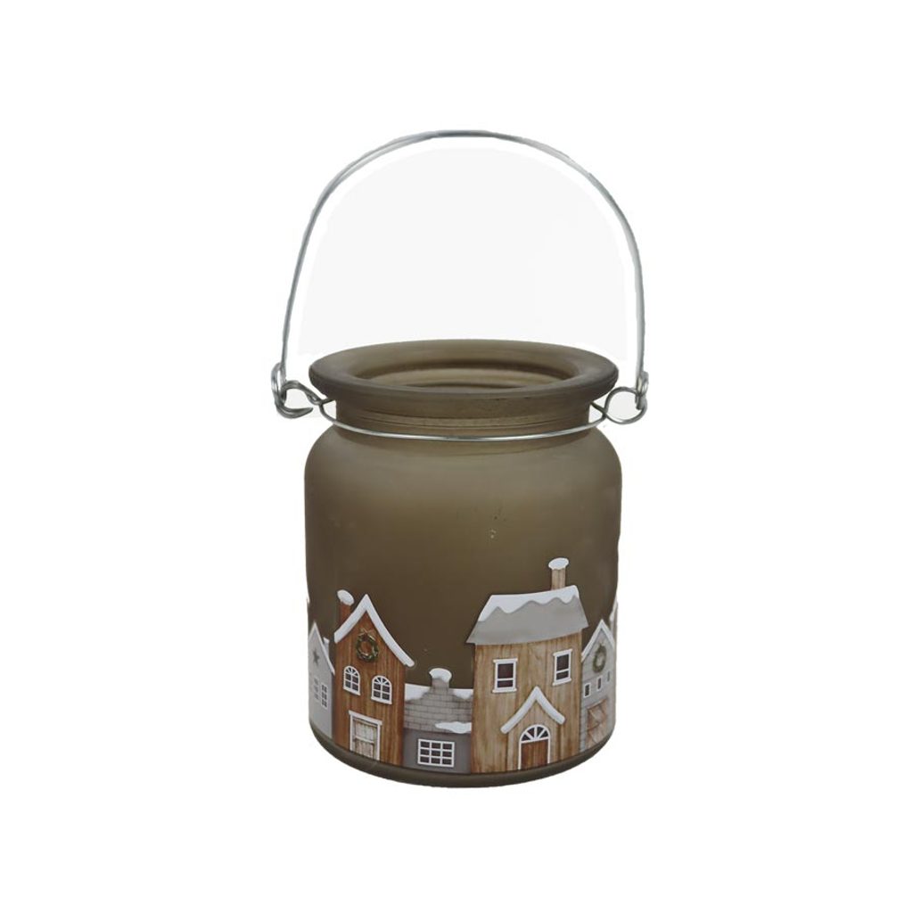 Svícen na svíčku. Rozměry : průměr 7,5 cm, výška 9 cm. Barva : kombinace hnědá, šedá. Materiál : sklo, kov.Rozměr: dia 7,5 × 9 cm