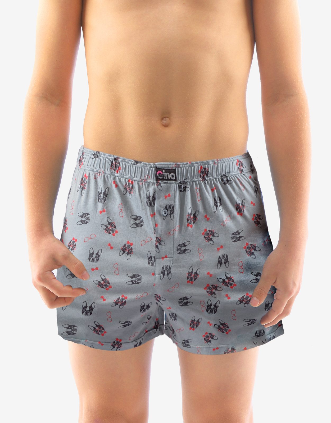 trenky volné chlapecké, šité, s potiskem značky GINA, kód 25015. Složení: 100% bavlnaVolné trenky ze 100% bavlny jsou ideální volbou pro každého, kdo má rád klasický pohodlný střih volných trenek a přírodní materiály. Tento kousek má hravý vzor a v pase nášivku s logem Gino. Dobře padnoucí pasová guma a rozparek na jeden knoflík jsou samozřejmostí. Tenhle super kousek vám prostě nemůže chybět!.