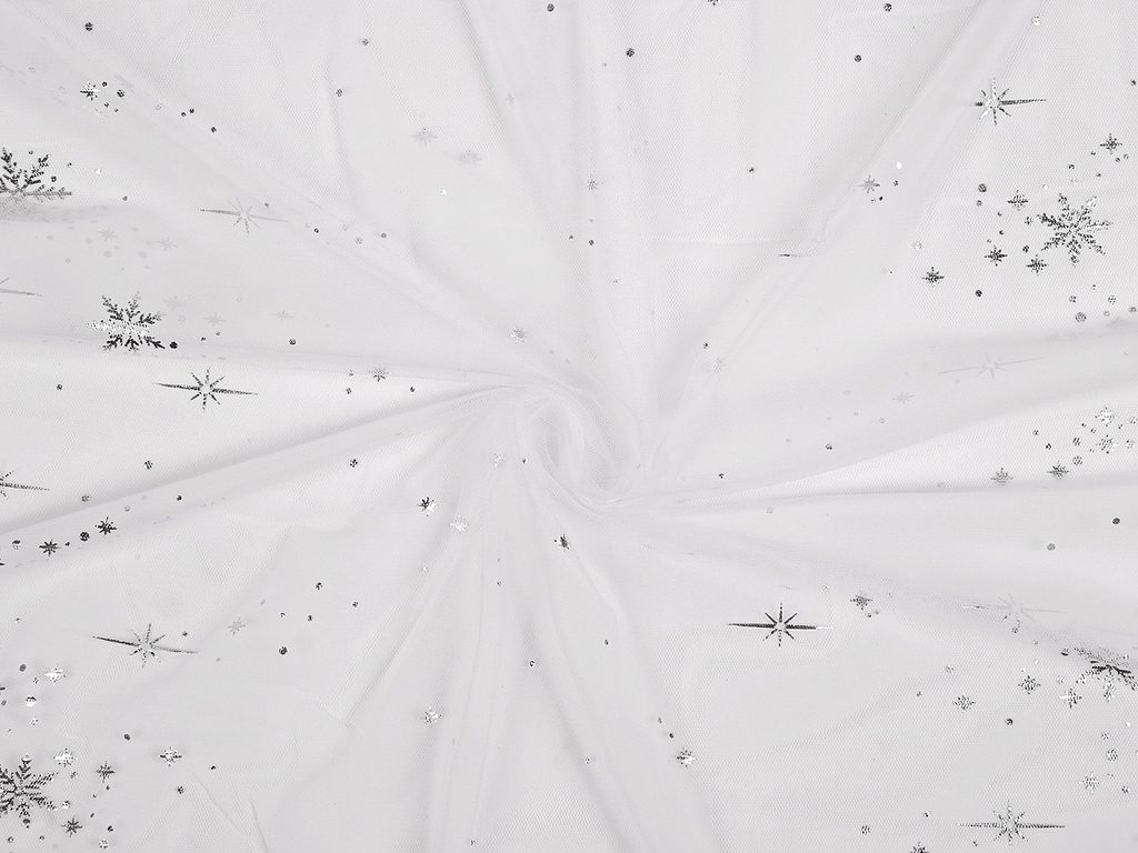 Tyl oděvní / dekorační vánoční vločky METRÁŽ