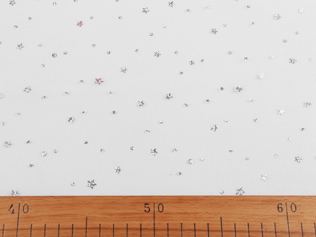 Oděvní / dekorační tyl s hvězdičkami s hologramem METRÁŽ