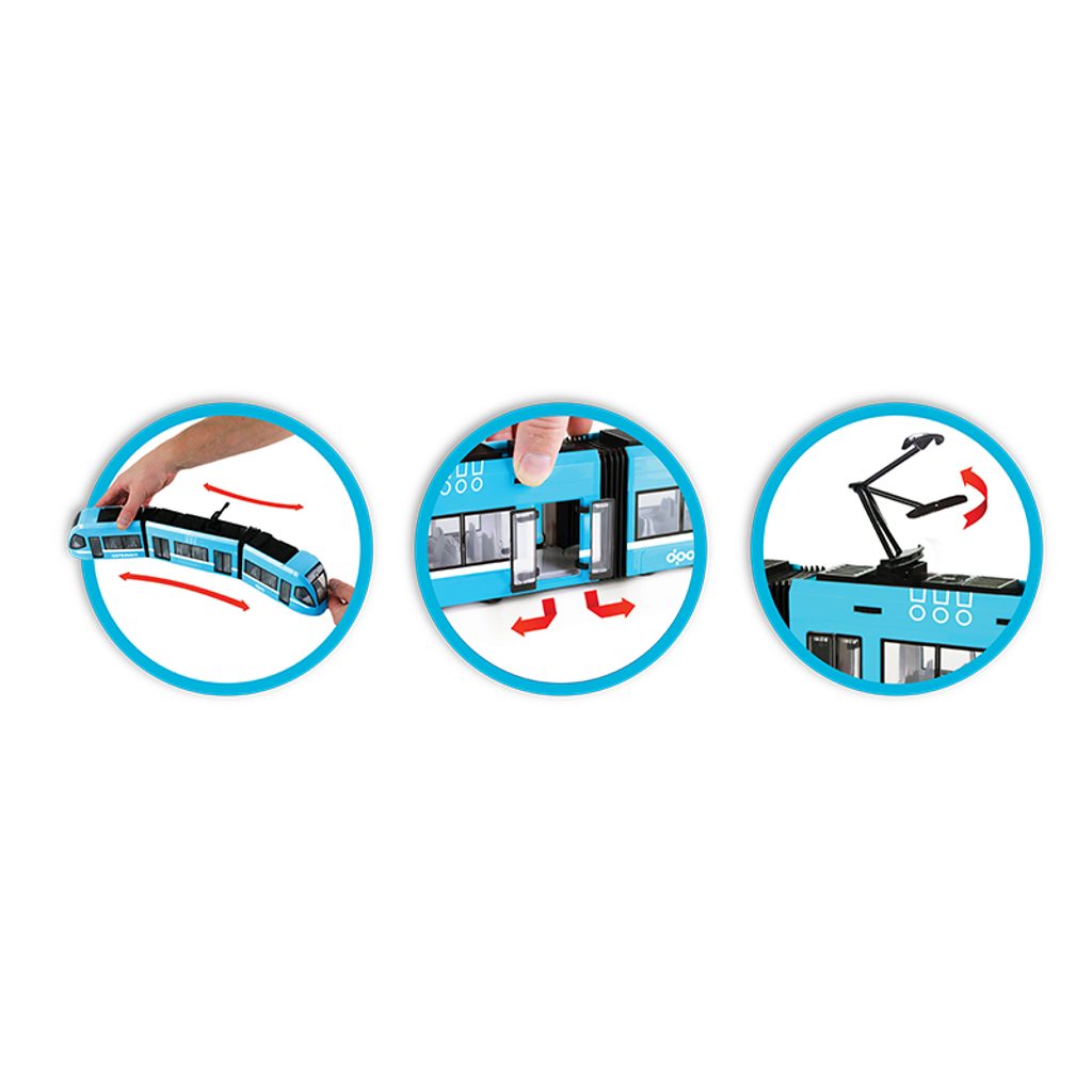 Parádní tramvaj, která jezdí na volný chod je perfektním dárkem pro všechny tramvajové nadšence. Dveře na jedné straně vozu lze manuálně otevřít. Tramvaj je vyrobená z plastu, je dlouhá 47cm a je velmi podobná tramvaji v Ostravě.