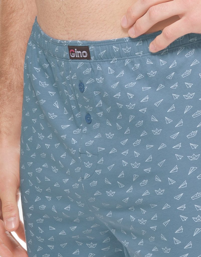 trenky volné, šité, s potiskem značky GINA, kód 75215. Složení: 100% BavlnaVolné trenky ze 100% bavlny potěší každého, kdo má rád klasický pohodlný střih volných trenek a přírodního materiálu. Dobře padnoucí pasová guma a rozparek na dva knoflíky jsou samozřejmostí. Tento kousek zdobí celoplošný vzor. V pase je nášivka s logem Gino a jsou vhodné pro každodenní nošení..