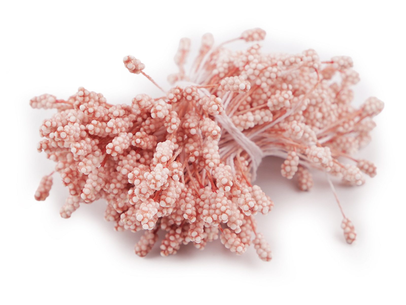 Efektní pestíky jsou vhodné k výrobě květin. Skládají se z drobných kuliček a drží na naškrobené šňůrce. Můžete je zakomponovat do středu umělých květin nebo i do věnců. Využijete je na výrobu květin z foamiranu, krepového papíru, barev na sklo nebo twist artu.Rozměry konců jsou cca 4 x 9 mm.