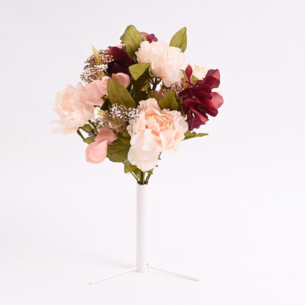 Kytice pivoněk. Rozměry : výška 50 cm. Barva : kombinace meruňková, bordó. Materiál : látka, plast.