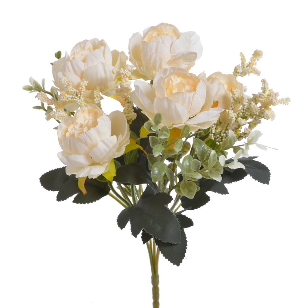 Pivonky trs 5 větviček - krémová