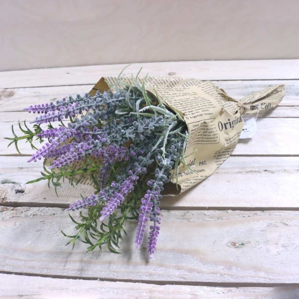 Dekorační kytice levandule. Rozměry : 10 x 9 cm, celková délka 32 cm. Barva : fialová. Materiál : plast, papír.Rozměr: 10 x 9 x 32 cm