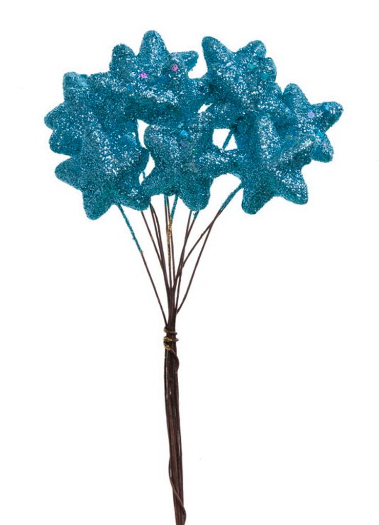 Dekorační velké hvězdy na drátku glitter modrá 12ks