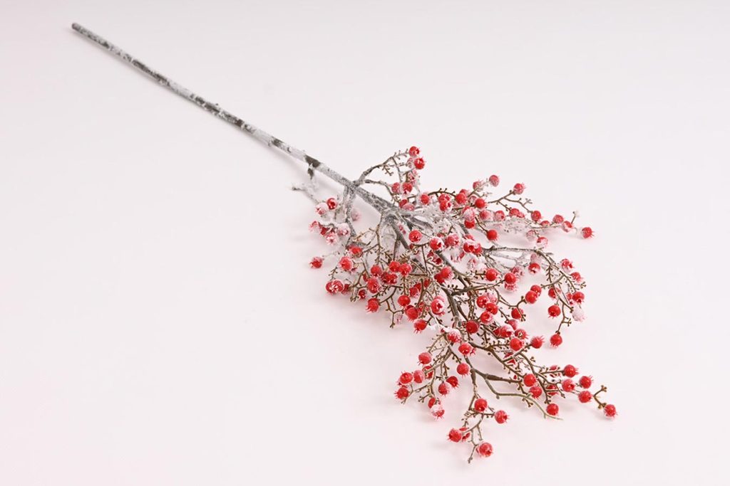 Dekorační větev s bobulemi. Rozměry : celková délka 75 cm. Barva : kombinace červená, bílá. Materiál : plast.- Rozměr: 75 cm