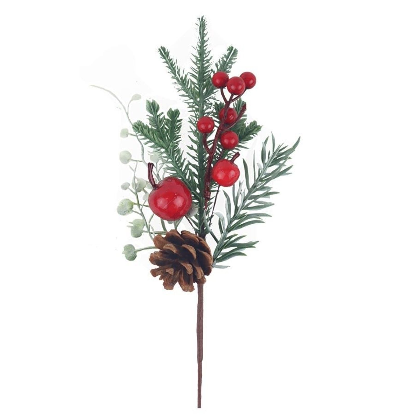 Dekorační větvička. Rozměry : 15 x 5 cm, výška 35 cm. Barva : kombinace zelená, červená, bílá, hnědá. Materiál : plast.- Rozměr: 15 x 5 x 35 cm