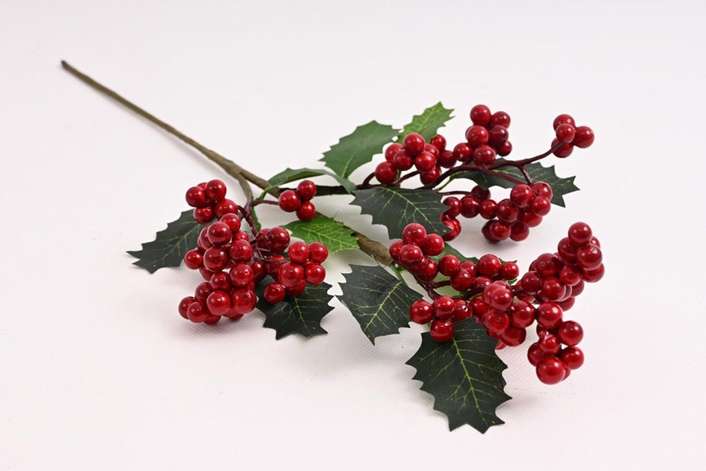 Mahonie s bobulemi. Rozměry : délka 40 cm. Barva : červená. Materiál : plast.Rozměr: 40 cm