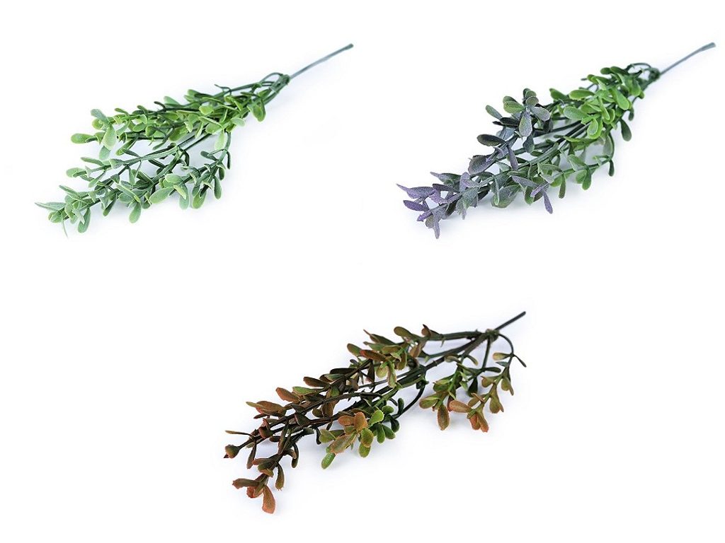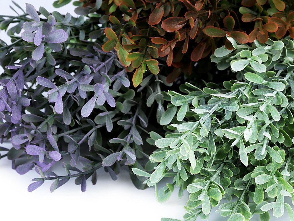 Větvičku s lístky můžete lehce tvarovat, protože v sobě ukrývá drát.Použití: Je vhodná k aranžování do květinových vazeb, věnců, aerárií, ikeban, košíků, váz apod. Větvičku můžete také použít k ozdobě při balení dárků.