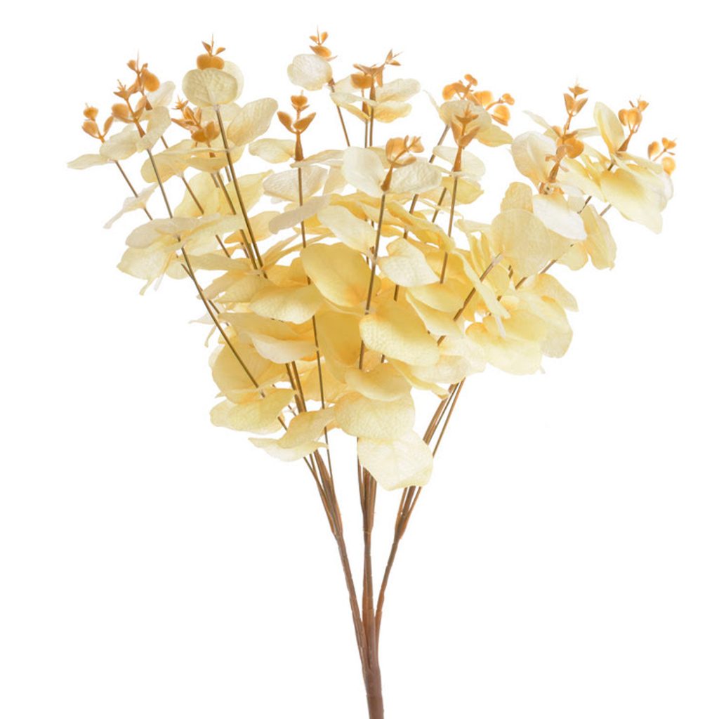 Umělý eukalyptus ve vanilkové barvě. Krásné barevné provedení umělého eukalyptu.