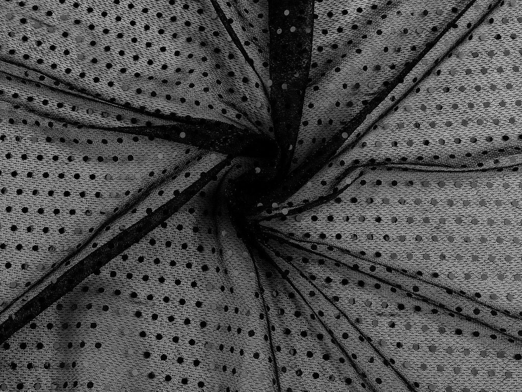 Jemný flitrový úplet využijete na šití tanečních a karnevalových kostýmů i plesových šatů a doplňků (psaníčka, pompadurky). Efektně se leskne. Aplikované flitry dobře drží.Látka je průsvitná, doporučujeme ji podšít.