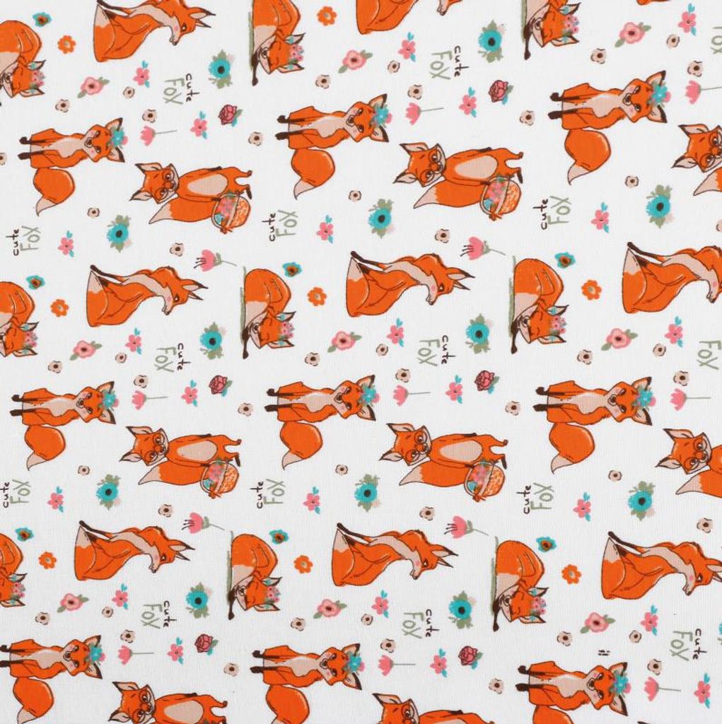Elastický úplet s dětským motivem, prodej po 1m.- Barva: Lištičky