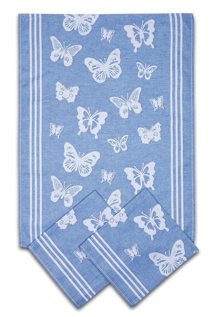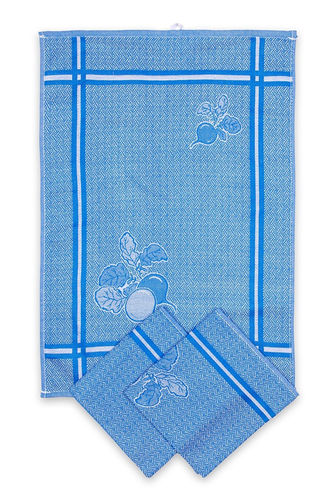 Sada tří bavlněných žakárový utěrek - extra savé se vzorem ředkvičky laděné do modré barvy. Rozměr utěrek je 3x 50x70 cm.