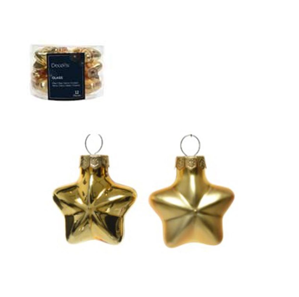 Sada vánočních ozdob. Sada obsahuje 12 ozdob. Rozměry : 4 x 2 cm, výška 4,5 cm. Barva : zlatá. Materiál : sklo.Rozměr: 4 x 2 x 4,5 cm