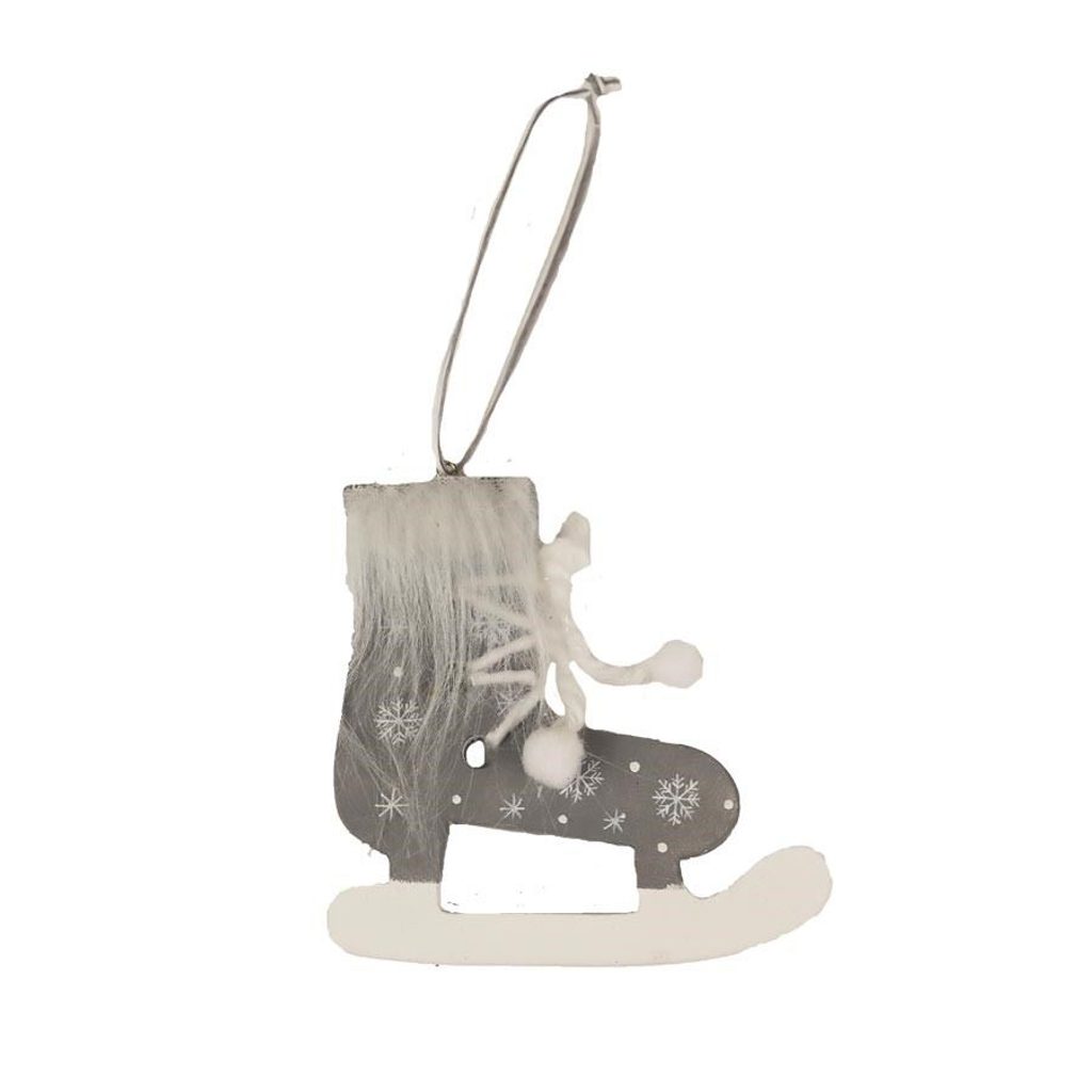 Dekorační brusle k zavěšení. Rozměry : 12 x 1 cm, výška 11,7 cm. Barva : kombinace šedá s bílou. Materiál na bázi dřeva.
