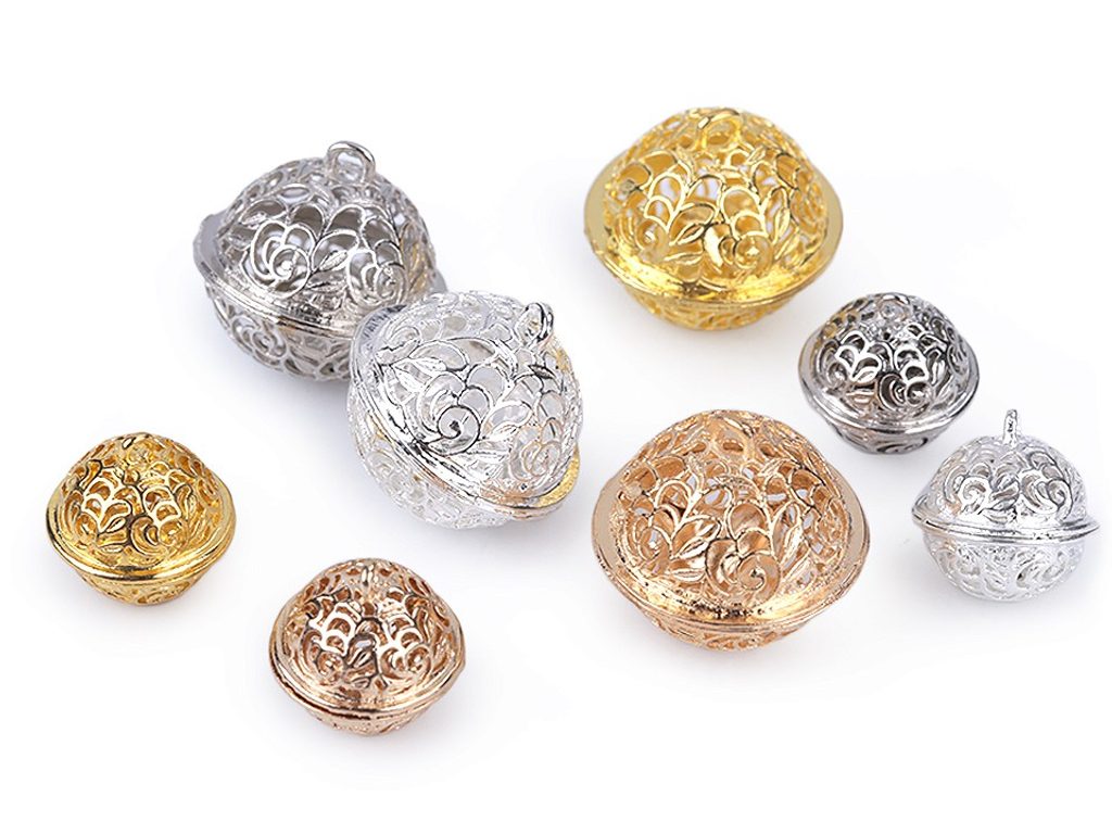 Kovové rolničky mají efektní filigránové výřezy. Jejich zvonění je hlasité a jasné. Rolničky využijete na výrobu různých ozdob a dekorací.