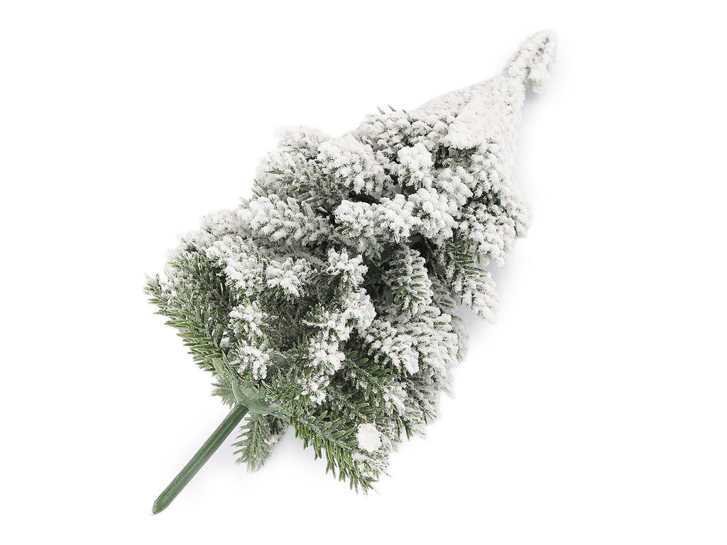 Umělý stromeček na drátku zasněžený do věnců, květináčů 13 cm, 17 cm