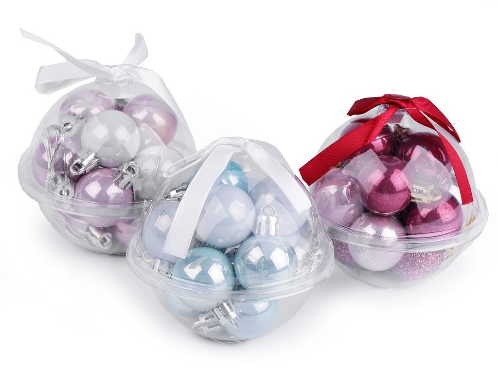 Malé baňky vyniknou na vánočním stromku, adventním věnci nebo je můžete pověsit na větvičky ve váze.Baňky jsou baleny v plastové krabičce ve tvaru koule.