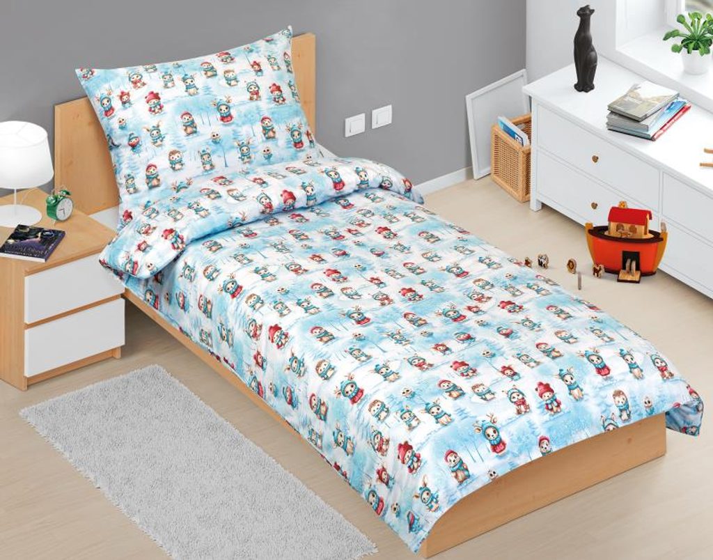 Povlečení dětské - Vánoce Modrá,Žlutá,Bílá 90/104 140x200, 70x90 cm