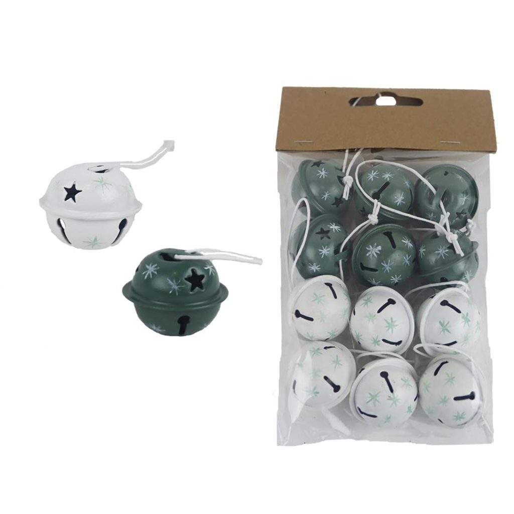 Sada dekoračních rolniček k zavěšení. Sada obsahuje 12 rolniček. Rozměry : průměr 3 cm, výška 2,5 cm. Barva : kombinace zelená, bílá. Materiál : kov.