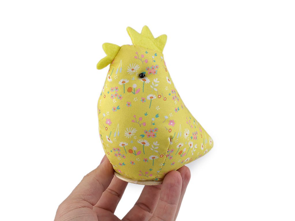 Textilní slepička vynikne ve velikonočních a jarních aranžmá. Lze ji také umístit na poličku, stůl či parapet, kde vytvoří hravé zákoutí.Slepička je měkká, lehká a má dobrou stabilitu.