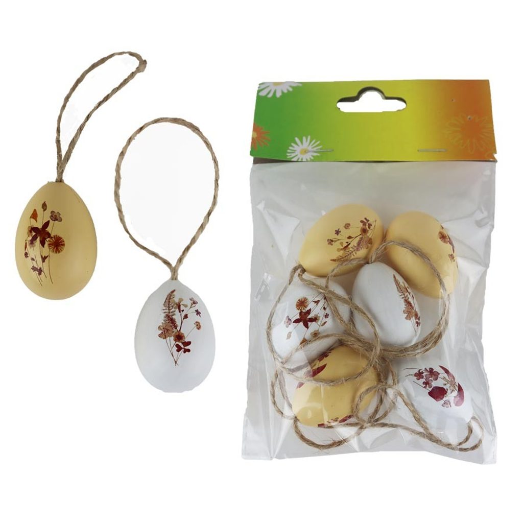 Sada dekoračních vajíček k zavěšení. Sada obsahuje 6 vajíček. Rozměry : průměr 3 cm, výška 4 cm. Materiál : plast.Rozměr: dia 3 x 4 cm