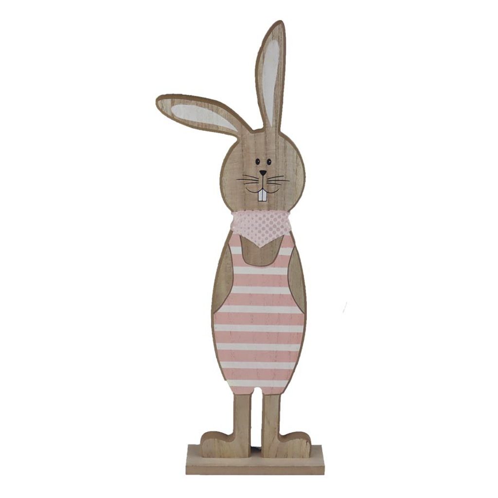 Dekorační zajíček. Rozměry : 15.5 × 5 cm, výška 51 cm. Barva : kombinace přírodní, růžová, bílá. Materiál na bázi dřeva.Rozměr: 15.5 × 5 × 51 cm