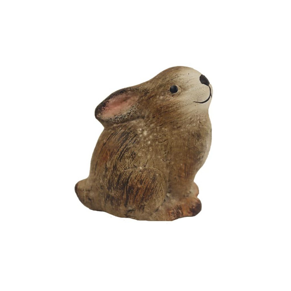 Dekorační zajíc. Rozměry : 9,5 × 5.7 cm, výška 7,6 cm. Barva : hnědá. Materiál : terakota.Rozměr: 9,5 × 5,7 × 7,6 cm
