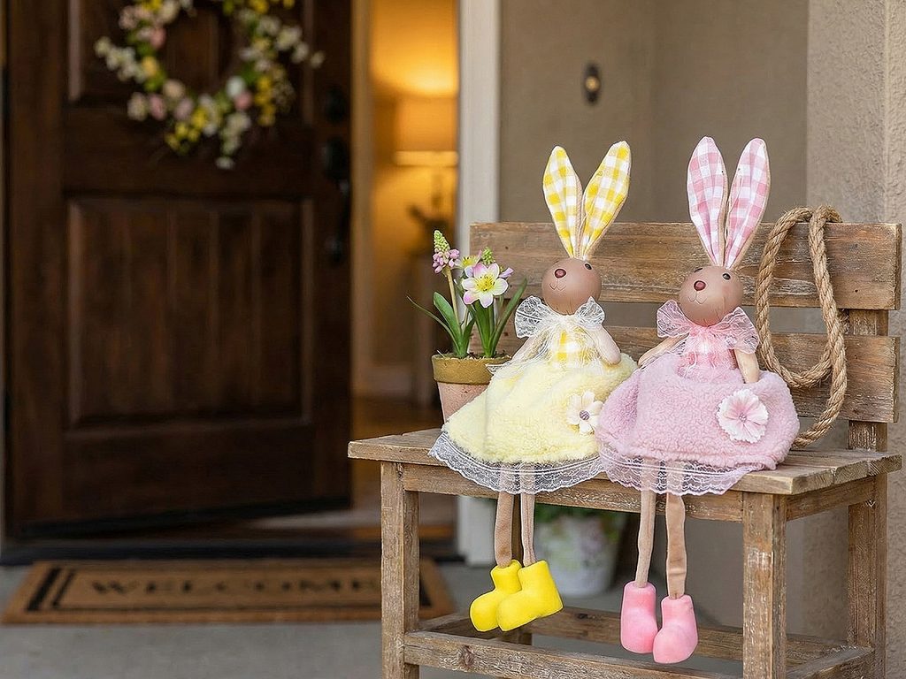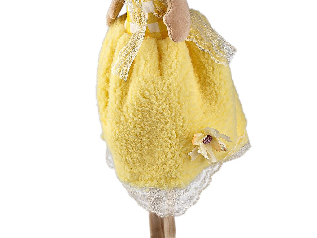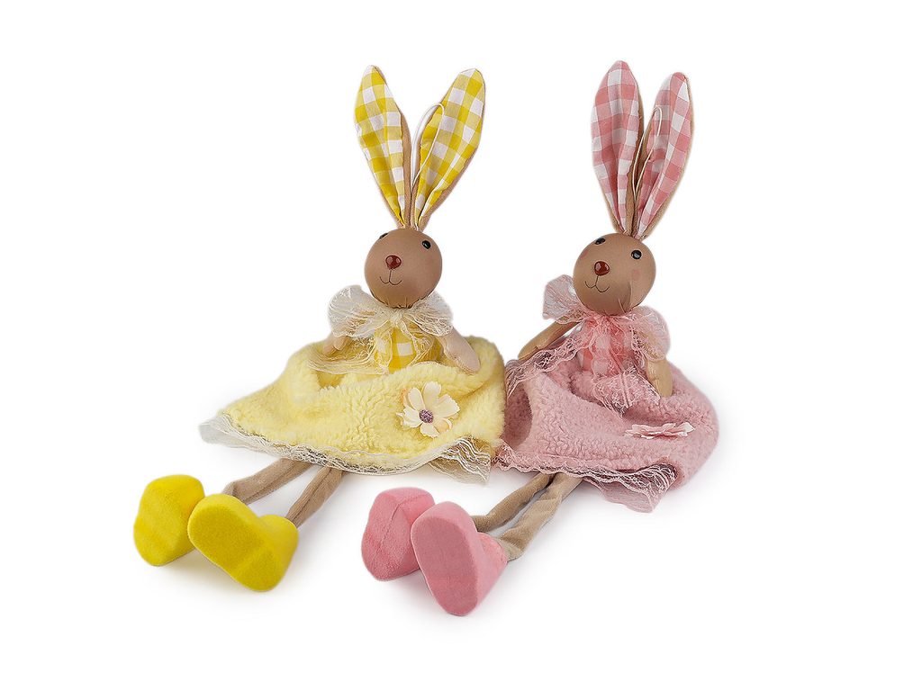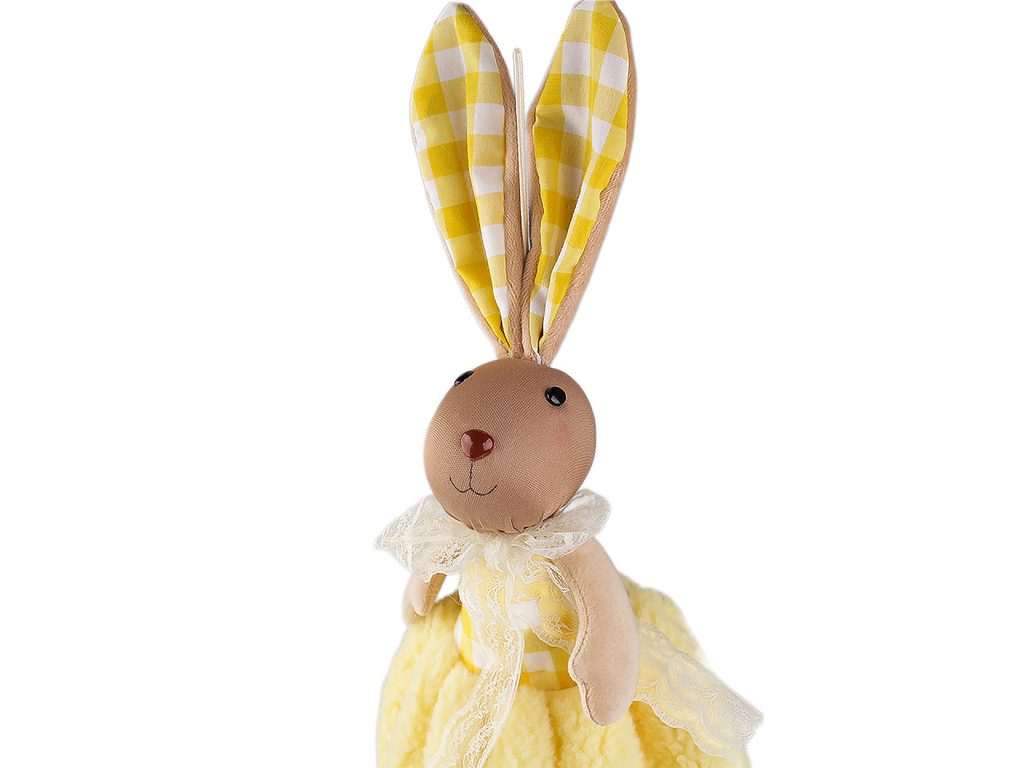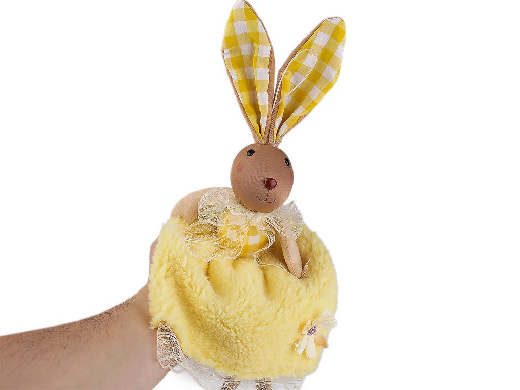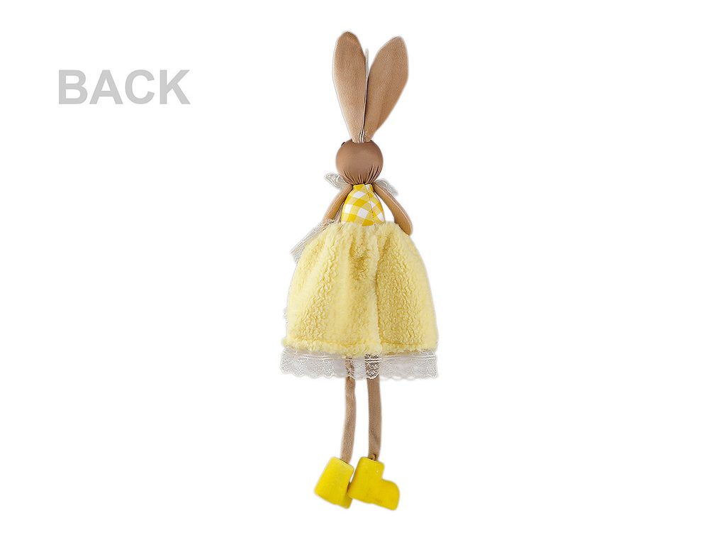 Velikonoční zajíček vnese do vašeho domova hravost a svěžest jara. Má roztomilý vzhled. Můžete ho posadit na stůl, na poličku apod. Díky poutku ho lze také kamkoli pověsit (na dveře, na zeď, do oken apod.). Sukýnku má z jemného plyše, nožičky volně visí.- Výška:: 55 cm