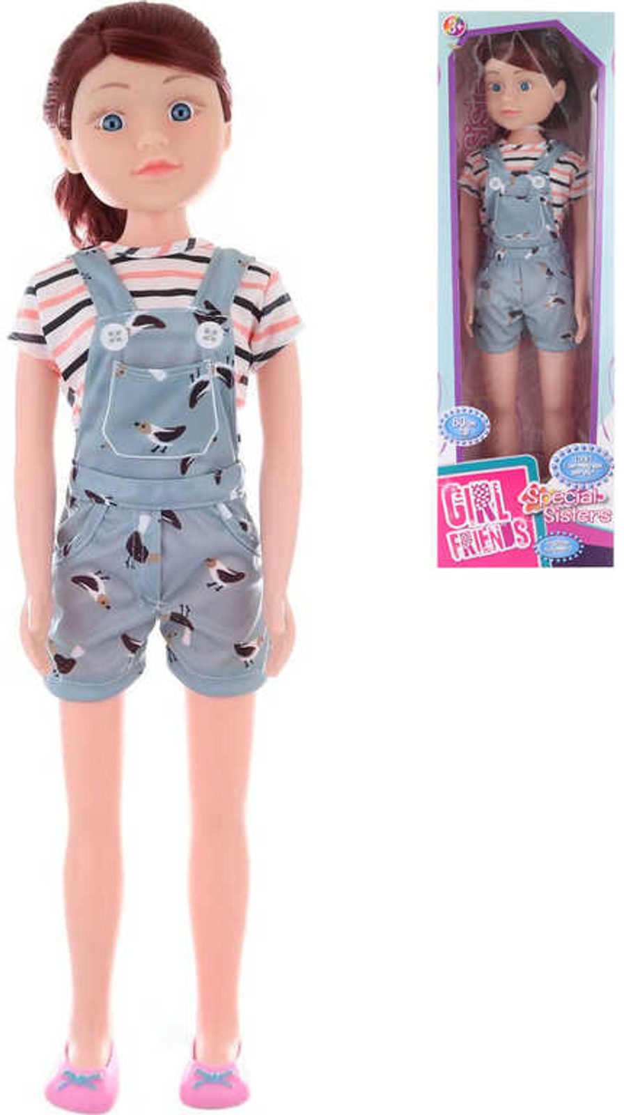 Krásná velká panenka s tmavými hnědými vlásky. Panenka má pohyblivé nohy a ruce - celé nohy, kolena se nezohýbají. (mechanická funkce - není na baterie - panenka se neudrží na místě bez pomoci). Baleno v krabici.