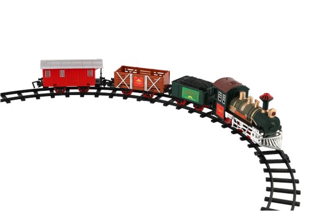 Tato super vlaková souprava kolejemi nadchne jistě každého kluka. Postav si trať a nech vláček jezdit. Občas nezapoměň zastavit a nechat vystoupit a nastoupit nové cestující... Balení obsahuje: lokomotivu, které svítí světla, 3 vagónky, 6 ks zatáček a 2 ks rovných kolejí. K provozu jsou třeba 2 x AA baterie do mašinky (nejsou součástí).Rozměry okruhu: 107 cm