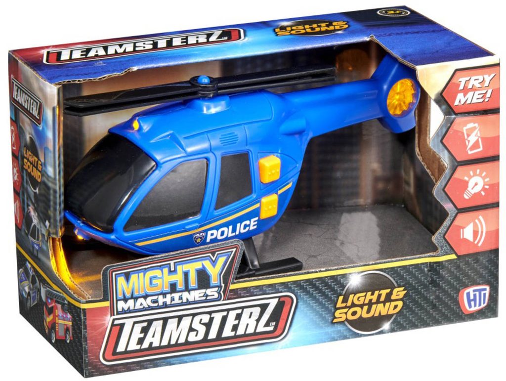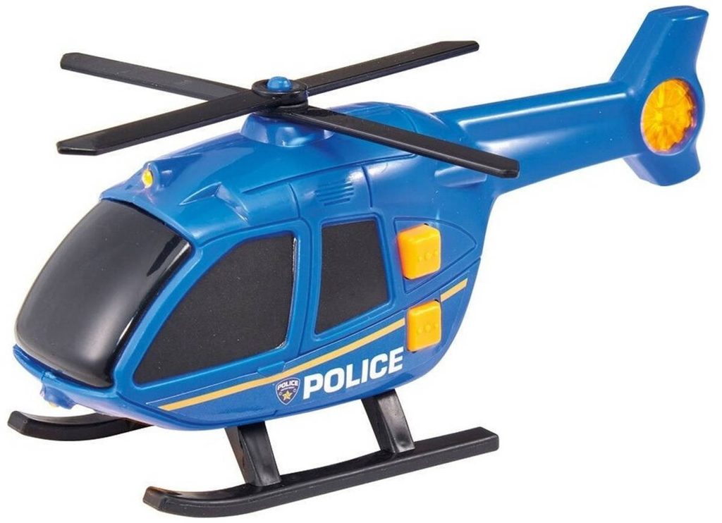 Policejní plastová helikoptéra na volnoběh, se světelnými a zvukovými efekty a otevíracím bočním panelem. Vezmi helikoptéru do ruky a leť! Speciální funkce - pohybové číslo spouští zvuk letící helikoptéry.